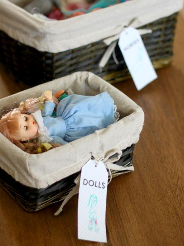 Haga que los niños dibujen los elementos en cada etiqueta. Por ejemplo, si escribe "muñecas" en la etiqueta, pueden hacer un dibujo de una muñeca. Esta es una excelente manera de alentar a los pequeños que aún no leen a que pongan los artículos en su lugar simplemente mirando las fotos..